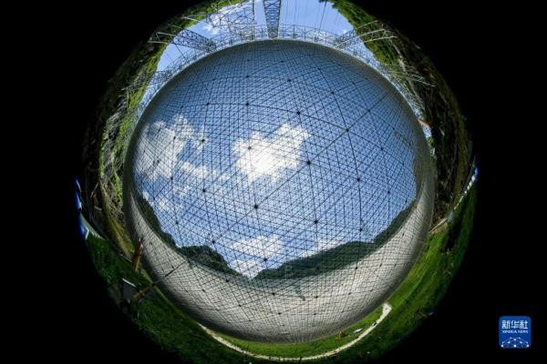 “中国天眼”一景(2022年7月21日维护保养期间鱼眼镜头拍摄)。