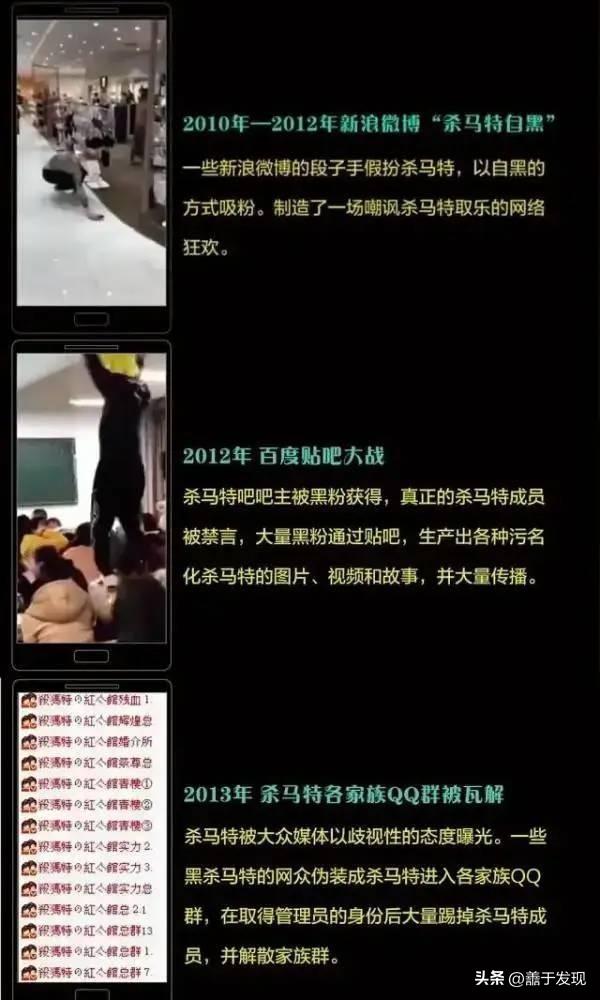 2012年的互联网上,他们扩张着自己的领地,利用“爆吧”攻陷其他贴吧,但这次却碰到了“硬茬”。杀马特们与李毅吧等几个大型贴吧发生了冲突,以黑粉的“为杀马特收集10000句‘杀马特滚出中国”活动为开端,整个互联网陷入了浩浩荡荡的“反杀运动”。这场贴吧的战斗以杀马特吧的吧主之位被黑粉获得为告终,他们的家族QQ群聊也相继被“炸”,真正的杀马特变得无家可归。