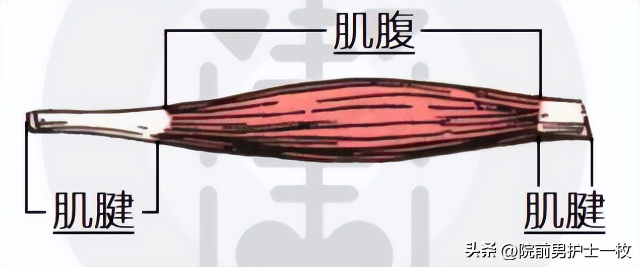两部分,一般说的肌肉拉伤都是指的肌腹部分出现拉伤。