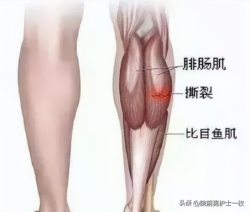 拉伤或断裂多发于内侧头,锻炼者会感到小腿“啪”一声或像被人打了一下。