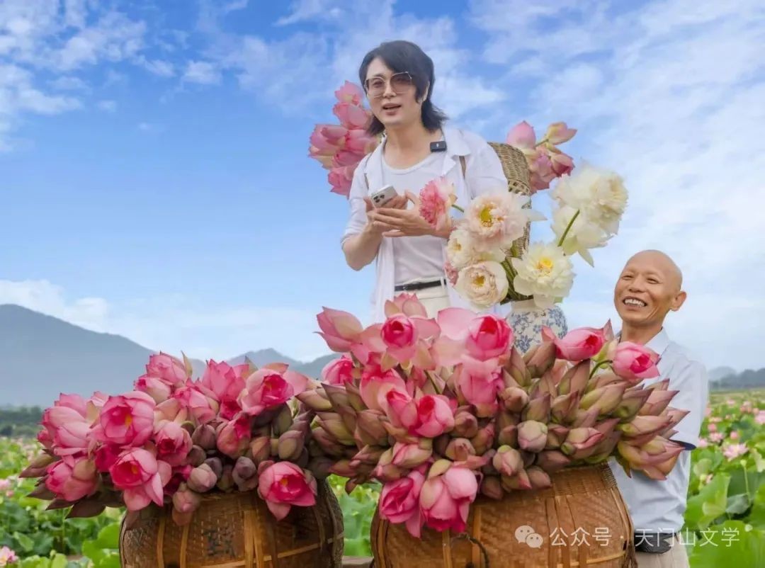 如果说刘继章是五夫镇乡村振兴的有力推动者,那么“荷小仙”就是用镜头记录这一切美好瞬间的见证者。“荷小仙”真名丁葆华,祖籍扬州,是一位以拍摄人像和荷花而闻名的知名摄影师。为了寻找最美的荷花,他的足迹遍布大江南北。他先去了江西、安徽,之后又远赴云南大理。一次偶然的机会,他在抖音上看到了五夫镇荷花的视频。视频中,那一片片盛开的荷花,在阳光的照耀下,宛如一群身着粉色纱衣的仙子,轻盈地舞动着。丁葆华一下子就被五夫镇荷花的独特魅力所吸引,迫不及待地踏上了前往五夫镇的旅程。