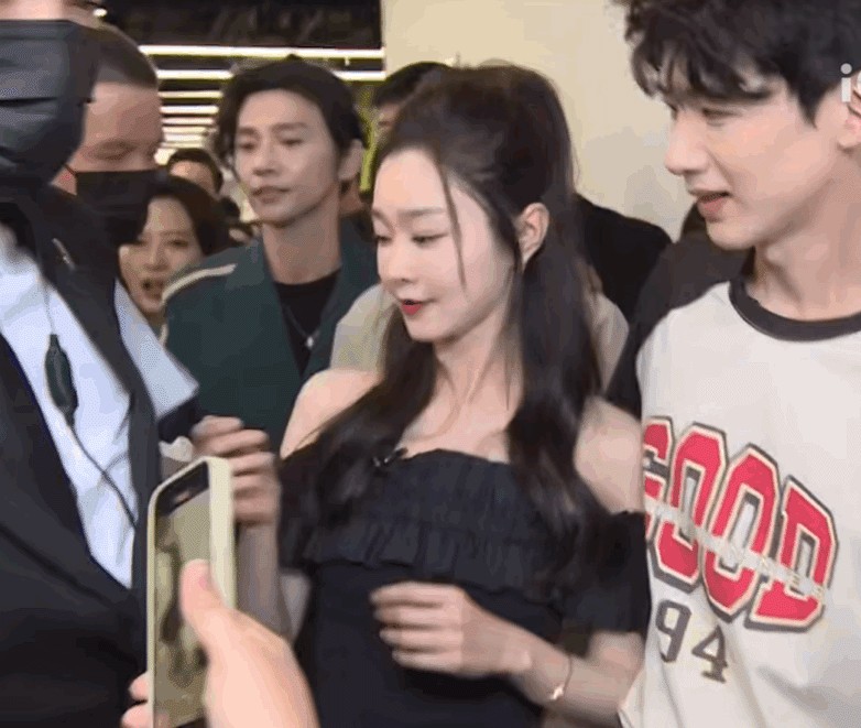 其实一开始宋轶站在白敬亭的左边,但面对涌来的人群,白敬亭立即将她拉到右边,做她的"贴身保镖",一直搂着她,并将她置于自己的安全区域。这无疑展现出他的深深爱意。