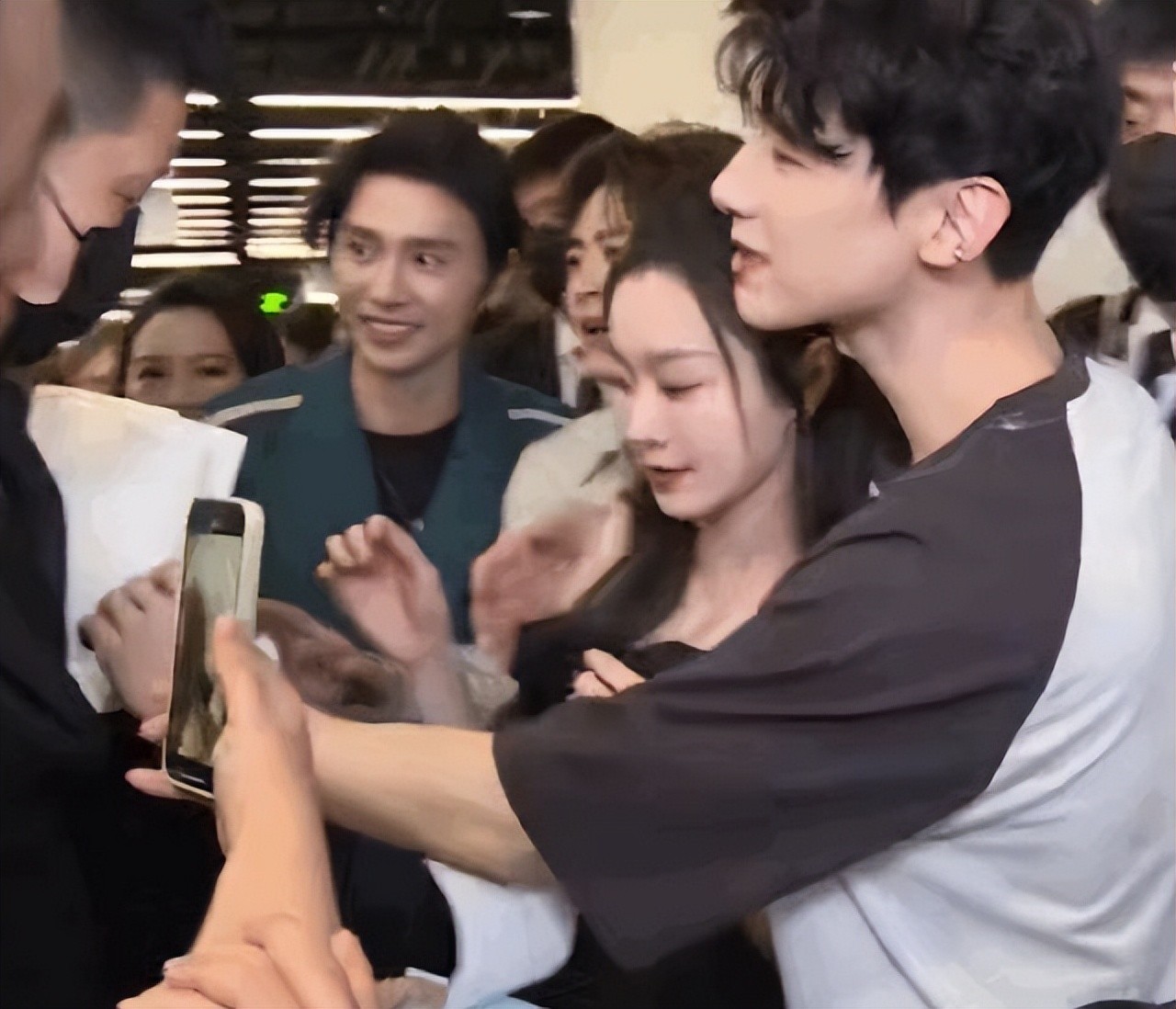 白敬亭在穿过拥挤人群时,不停地说着“不好意思,请让一让,别挤别挤”,同时伸出胳膊挡在宋轶身前,害怕有人在拥挤中碰到她。这些细节显示出他对宋轶的关爱。