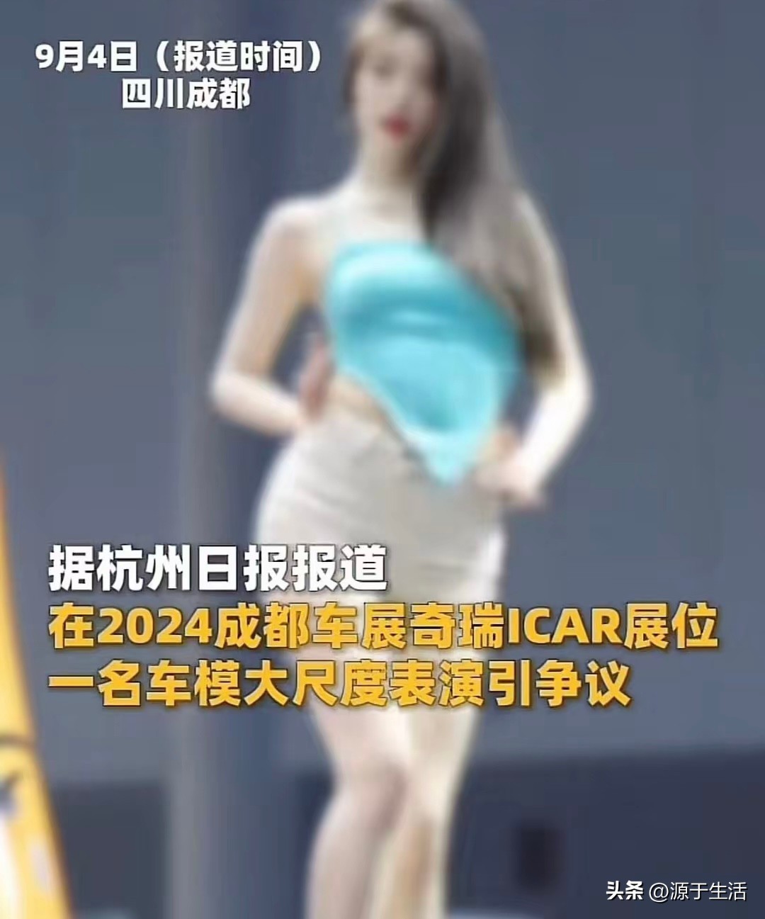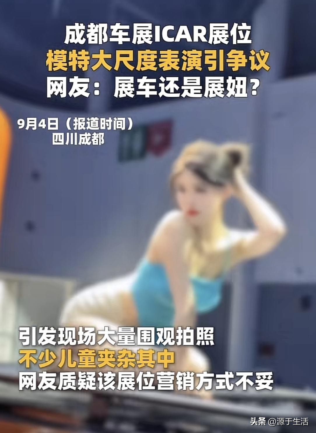 近日,在四川成都的车展期间,一位奇瑞iCAR展位的女模特在展车的车顶肆意做出大尺度动作,引发了全网热议。