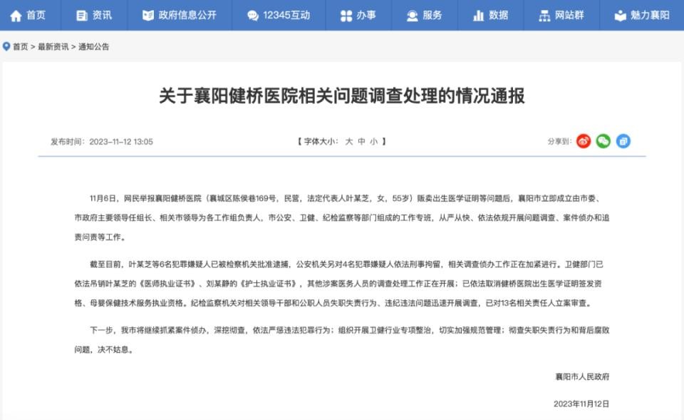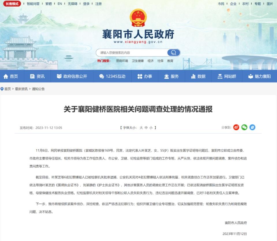 11月12日,湖北襄阳健桥医院贩卖出生证一案有了最新进展,着实令人鼓舞!
