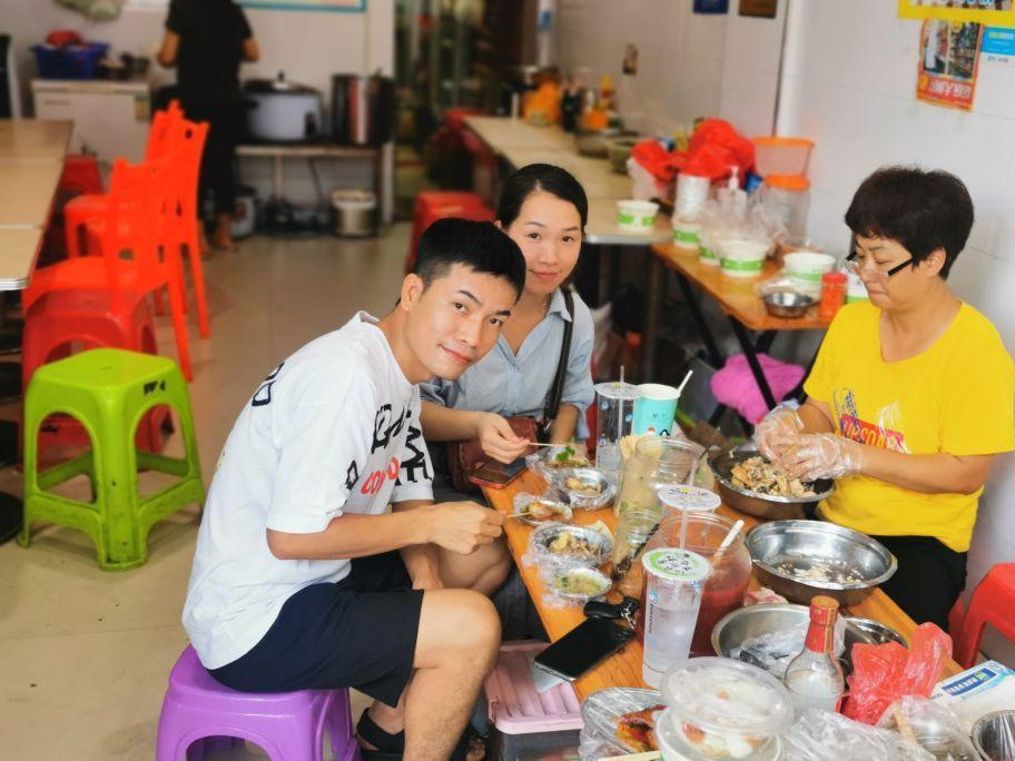刚刚走进街道里就看到了卖当地小吃的小店,里面有卖最正宗的当地小吃毛蛋、炸虾饼、炸红薯和炸芋头。这些都是当地最地道的小吃咯。