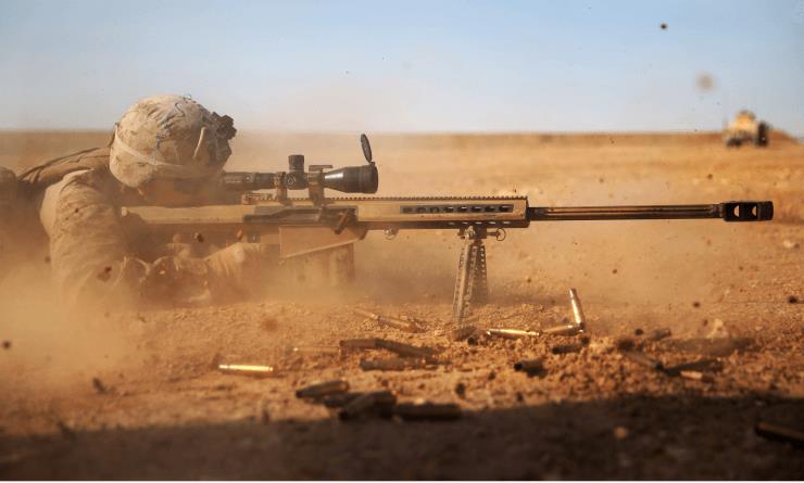 早在1990年, M82的第一种型号M82A1就成了美国海军的制式武器,并在海湾战争中取得了不俗的战绩由于它和勃朗宁M2重机枪(俗称0.50重机枪)一样,使用的都是12.7x99毫米NATO大口径弹药,所以也被美军称为“轻50”。