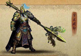 相传,小说《说唐》《忠义响马传》《兴唐传》中人物,隋朝大将,为大隋丞相宇文化及之子宇文成都。被隋炀帝封为无敌大将军。号称天宝大将,是大隋王朝的支柱。被称为隋唐第二条好汉。武力仅有李元霸一人能及,力大无穷,威猛罕匹。身长一丈,腰大数围,金面长须,虎目浓眉,使一柄凤翅鎏金镗,重三百二十斤",(凤翅镏金镗,初时重200斤,南阳关320斤,和李元霸比武时则重400斤。胯下座骑:赤炭火龙驹(银河驹、浑红兽、赛龙五斑驹)。)传说为九天应元雷神普化天尊转世。与瓦岗寨英雄为敌,最终在扬州被李元霸所杀。