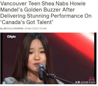 - 狂赞!加拿大14岁华裔女孩"达人秀"走红:征服评委,直入半决赛
