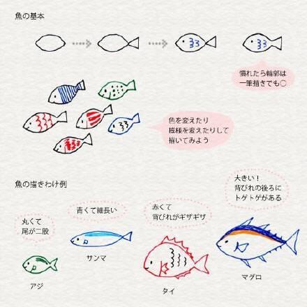 一组非常可爱的手账素材绘画,有鸟儿,小鱼,花朵和树等,来自KANA,大家都学起来!!