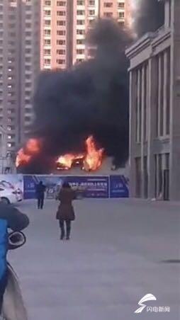潍坊一工地工棚着火现场浓烟滚滚,原因正调查