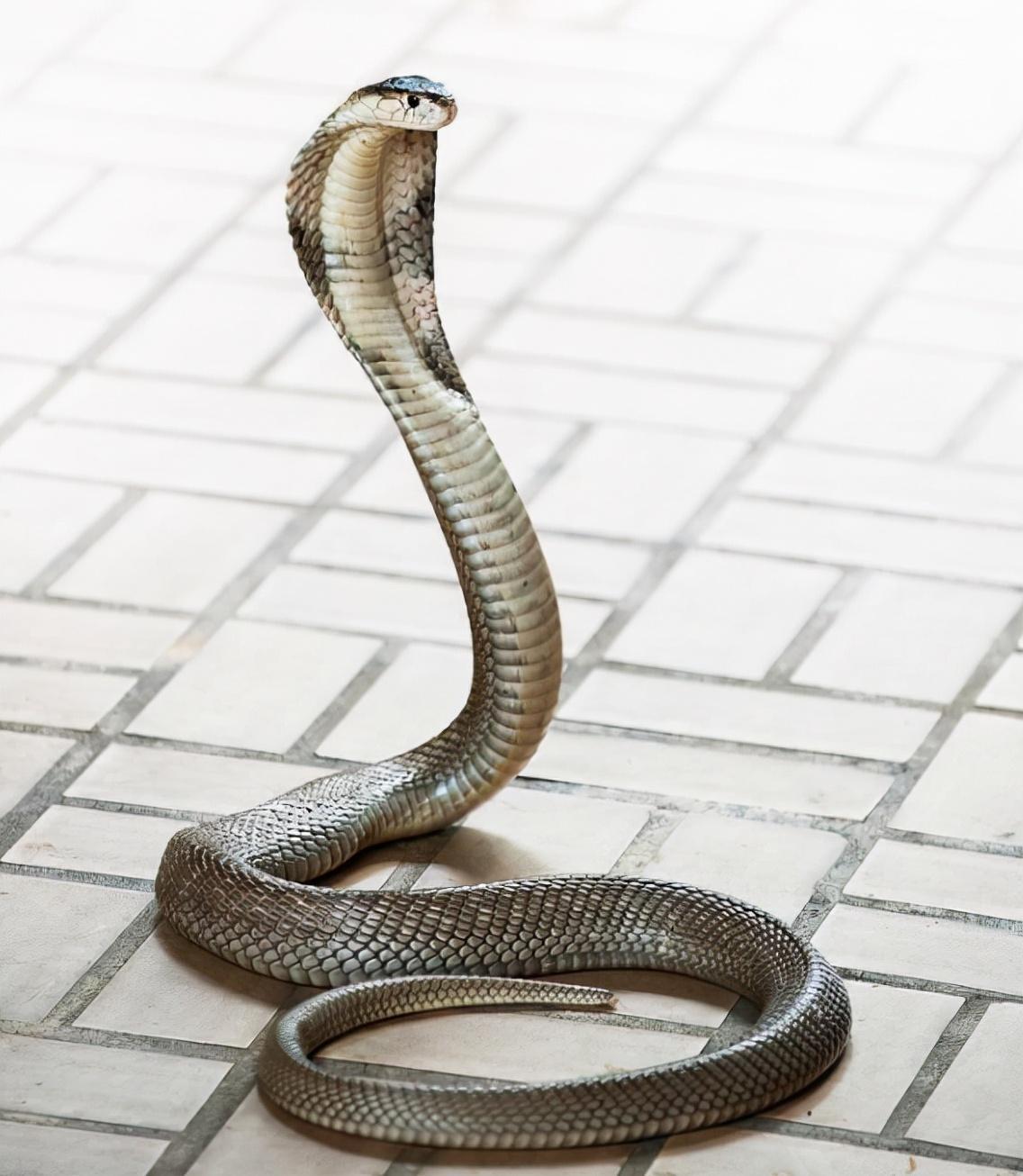 虽然眼镜王蛇的外形有点像眼镜蛇,攻击方式也像,但它俩的区别还是挺大的。最明显的就是眼镜王蛇的体积比眼镜蛇大多了,而且它们颈部的斑纹是呈“八”字型的,而眼镜蛇是单眼或双眼圈纹。