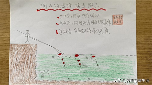 4.打窝上竿抛竿作钓.如果说以上那些是基本功,那么接下来的一系列动作可能算上是一点技术活了.在很多时候,我们和大师上同一个钓点,钓同一水深,甚至差不多钓同一钓棚.大师们屡屡上鱼,我们却颗粒无收?最主要的原因是我们的钓组在水下的状态与大师的不一样.首先我们打一两勺窝料在流头,窝料在水中的状态是一边下沉一边随流移动,一般的轨迹是斜下抛物线.接着我们上饵抛出钓组,从流水方向来看,阿波漂入水点在刚刚打窝的入水点或流向下方一点.要做到,饵钩最远,从饵料到阿波漂,到竿尖保持一条直线.然后,线组开始下沉,配重水中咬铅由于有主线牵制和阿波孔的摩擦力,一般比饵料钩子下沉得更加慢.饵料一边下沉一边随流移动.这是最理想的下沉状态.饵料先抵达之前打好的窝料带.刚好有鱼在觅食.刚好饵料也到了,刚好被鱼吃了,刚好你的钓组是差不多一条直线.稍有扯动,阿波漂就能反映出来下沉.扬竿中鱼.完美!
