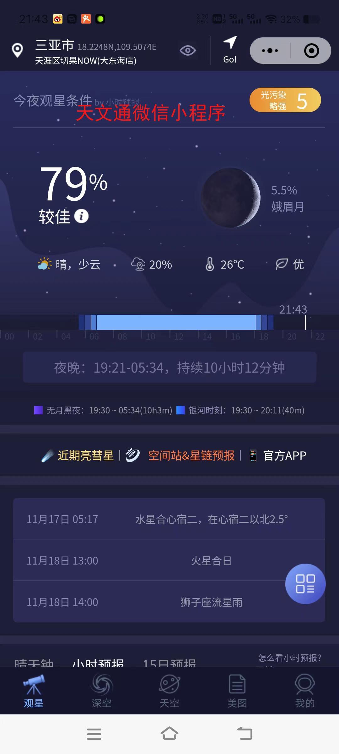 手机端:微信搜索小程序“天文通”,进入后,往下拉,最下面就是当前位置光污染地图。