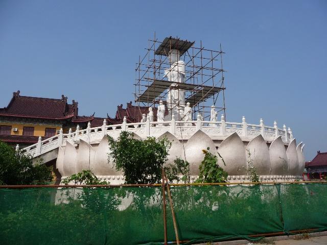 藏经楼后面,是一尊高大精致的露天汉白玉阿弥陀佛雕像。遗憾的是雕像正在维修。