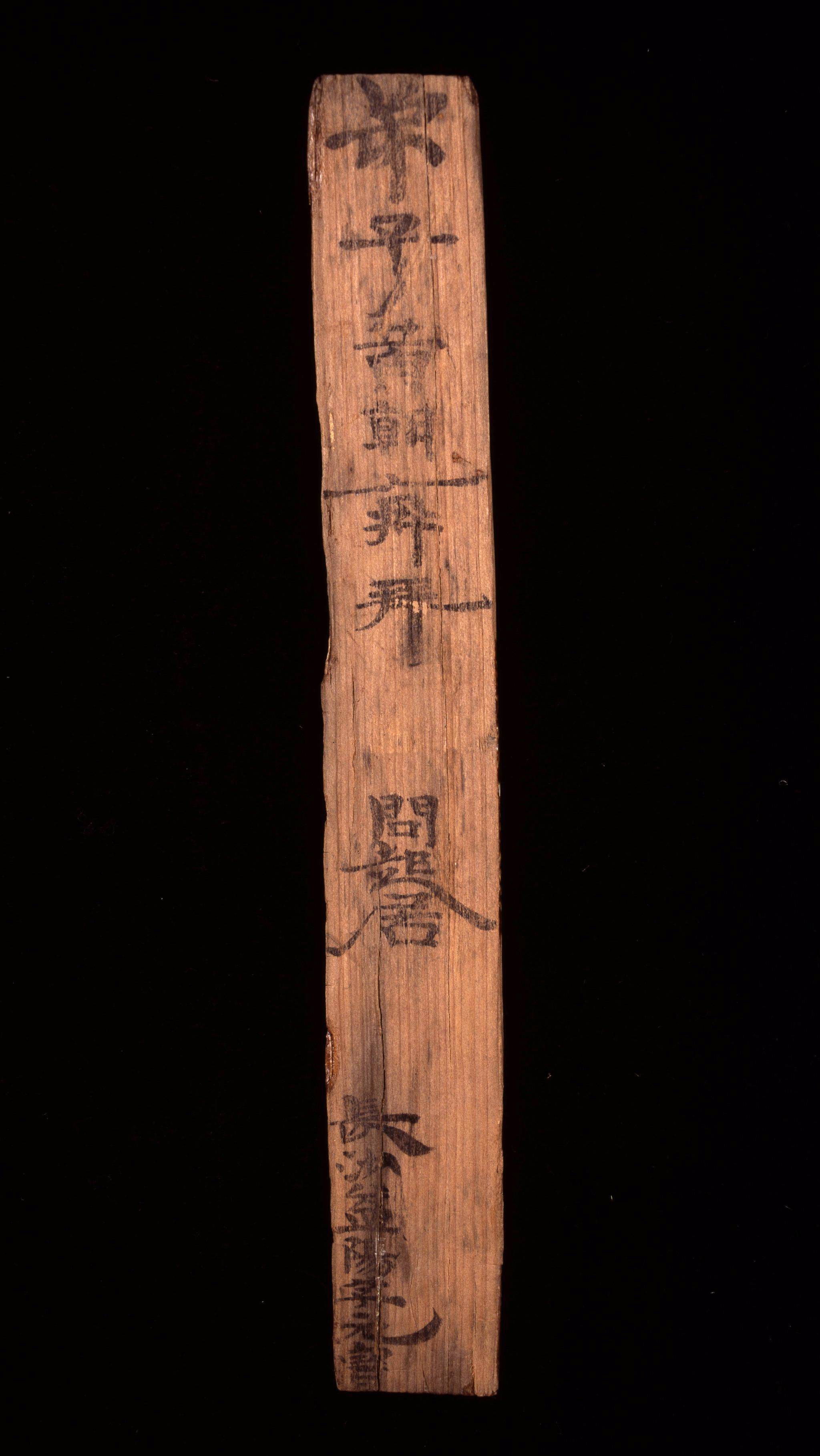 谒,刺。这个类似于现代社会的名片,所以后来人们也以“名刺”称呼名片。谒、刺以竹木为之,下部两边各削凹口(也有不削的),顶端或平或削尖,一面自书姓名,一面写上要谒见者。如上面的“黄朝再拜”名刺简,内容就是:“弟子黄朝再拜 问起居 长沙益阳字元宝”。大致意思就是:学生(谦称)黄朝恭敬地拜见您,向您问安,我是长沙益阳人,字元宝。因为谒、刺往往是在参见尊贵人物时用的物品,因此相对来说,上面的字迹都十分工整。出土的谒、刺一般长约汉尺一尺,宽一寸。