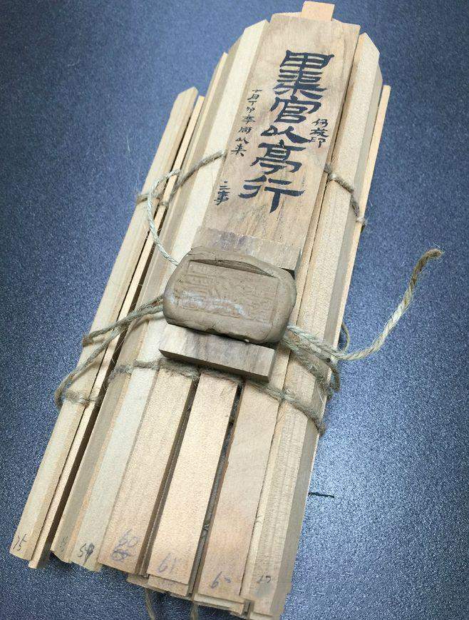 “合檄”的大致样子如图,上面加有封泥,封泥之上加盖印章,要看里面的内容,要先毁坏盖有印章的泥块,再拆除绳子,才能看到里面的内容,这样制作的主要目的是为了防止泄密。当然,这是文字较短的,文字较长的也用封泥,如图: