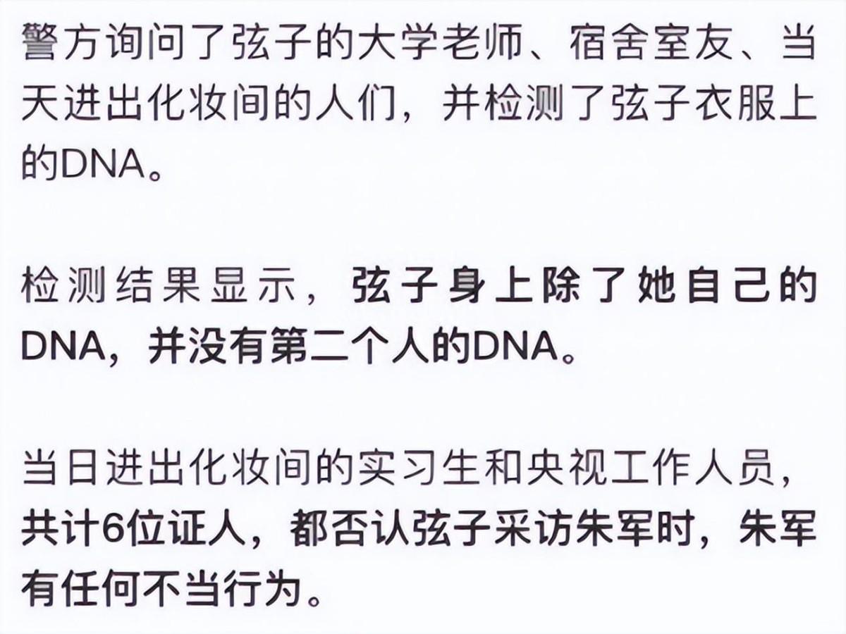 没有检测出DNA也就意味着朱军并没有碰过弦子,她所控诉的一切都是子虚乌有的事情。