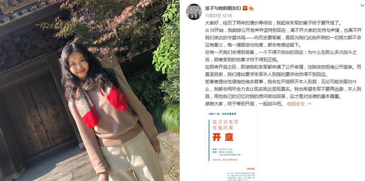 在弦子控诉朱军的同时,还有一位女性同她一样活跃在互联网上,帮她扩大舆论影响。