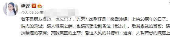 就在昨天上午,黎姿在自己的微博中晒了一组旧照片,为了祝贺《恋战冲绳》上映20周年。