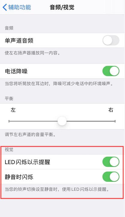 用户可以前往 iPhone “设置”-“辅助功能”-”音频/视觉“中开启“LED 闪烁以示提醒”功能,以避免设备在锁屏且静音时错过重要通知或电话,但需要注意的是,“LED 闪烁以示提醒”仅在您的设备锁定时工作。如果该功能在您使用手机时无效,是正常的设置。