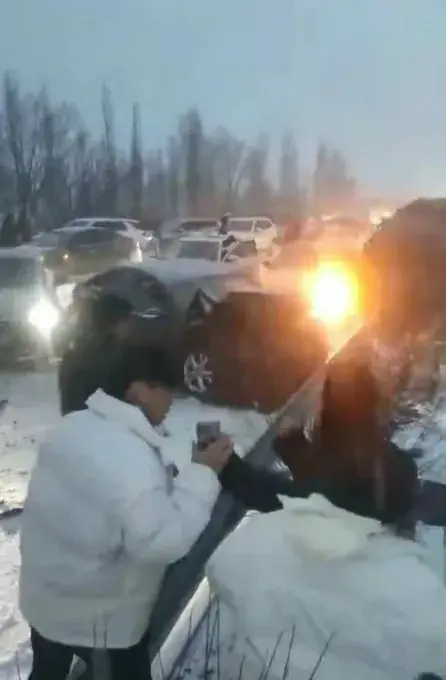 2025年12月10日晚上8点左右,二广高速G55原平至崞阳段受大雪影响,发生多车连环追尾事故。